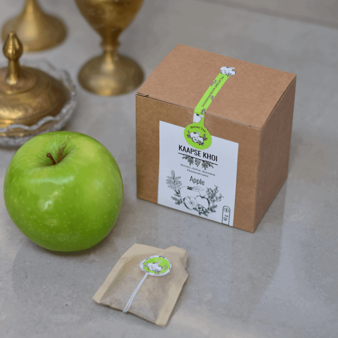 Buchu helps treat inflammation in the body and specifically targets Urinary Tract & Kidney Infections. Frankincense serves as an Anti-inflammatory/Bacterial/Cancer. Whilst Rooibos & Sundried Apple serves as an antioxidant containing Vitamin B & Fiber