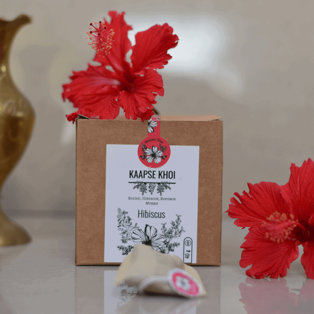 Buchu helps treat inflammation in the body and specifically targets Urinary Tract & Kidney Infections. Myrrh serves as an Anti-Viral/Bacterial/Fungal/Parasitic. Whilst Rooibos & Hibiscus Petals serves as an antioxidant containing Vitamin A, B2 & C.